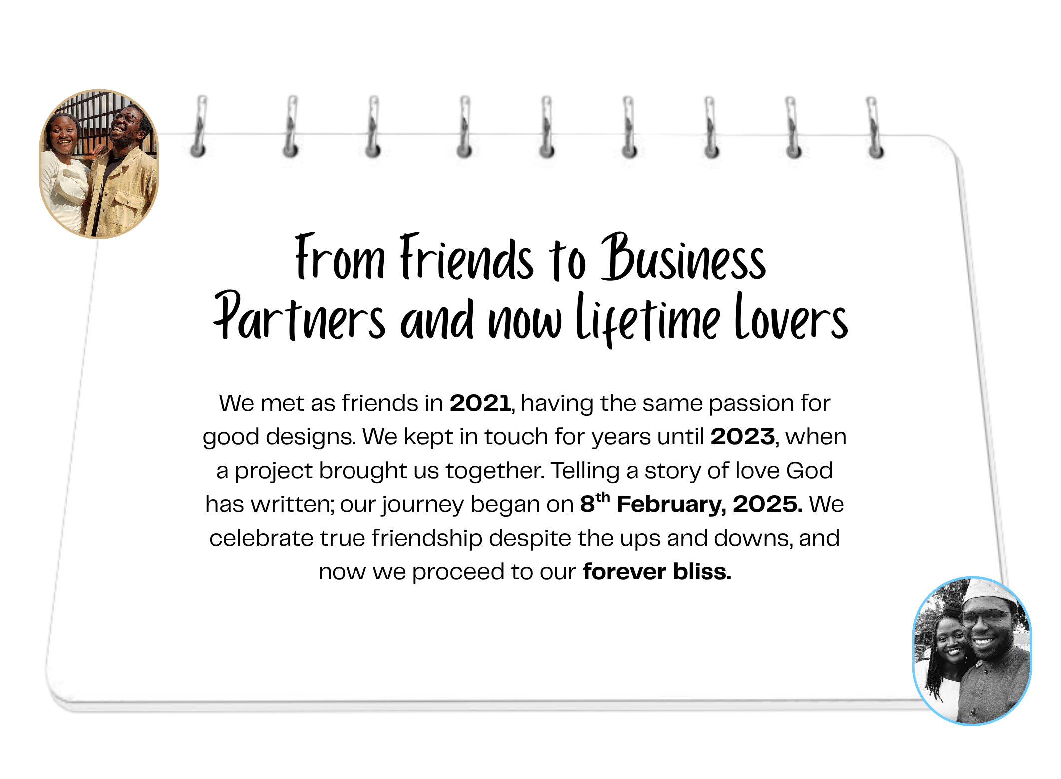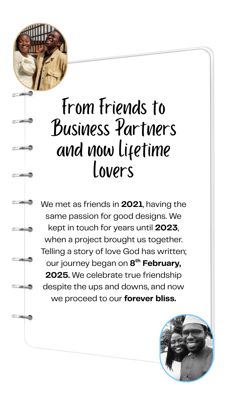 Ife mi, Iranwokristi mi owon, my Big Baby, my chosen David, eni ti oluwa fifun mi, and my sponsor. I remember the first time I sent a message to you on WhatsApp, I was captivated by a design you made; and now I forever get to be captivated by you (giggles). You support me without holding back; you love me and I don’t have to be in doubt. We have made a lot of memories together, and it is just the beginning. I am proud to call you, MY HUSBAND. As always, I love you, my Big Baby.